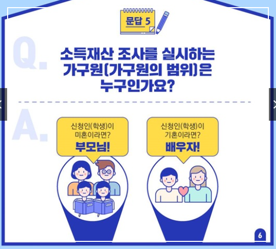 지원 자격은 학생 본인과 부모(기혼자의 경우 배우자)의 소득과 재산 등을 종합적으로 고려하여 결정됩니다.