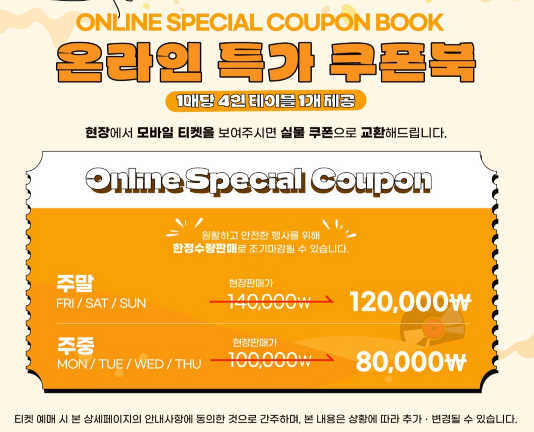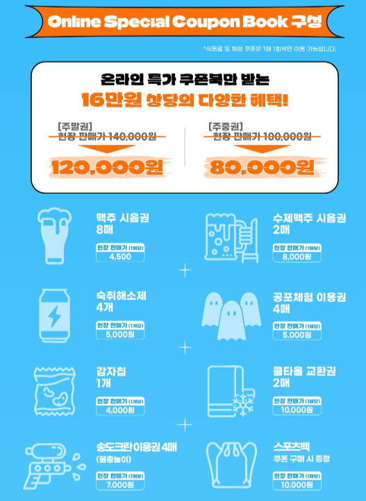 축제는 무료이지만 현장 이용이 편리하도록 음료와 푸드를 더 편하게 즐기고 싶은 분들을 위한 선택 옵션도 미리 구매하실 수 있으니 확인 바랍니다.