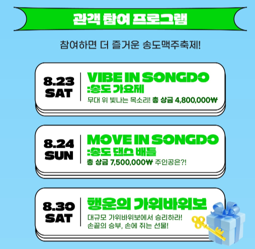 송도맥주축제 라인업은 방문객에게 큰 즐거움을 제공하며, 축제의 대표 콘텐츠로 자리 잡고 있습니다.