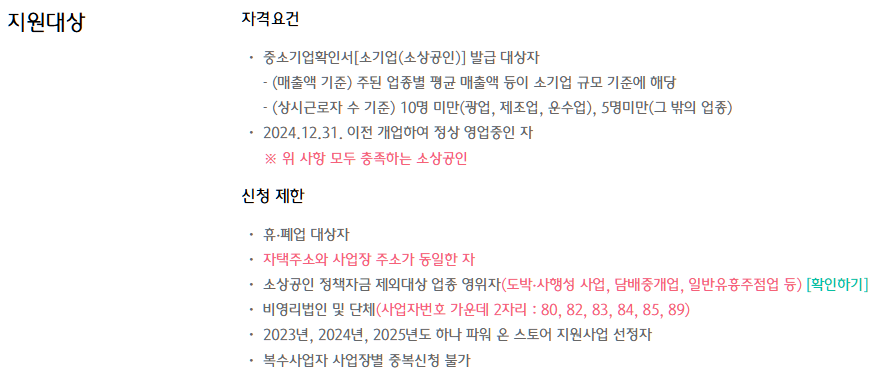 소상공인 하나 파워온 지원사업은 중소기업확인서상 소기업, 즉 소상공인에 해당하는 분들이 신청할 수 있습니다. 또한, 2024년 12월 31일 이전에 개업하여 현재 정상적으로 영업 중이어야 합니다.