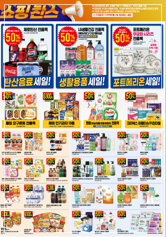 3. 생활용품과 가공식품도 알뜰하게, 2개 이상 구매 시 최대 50% 할인