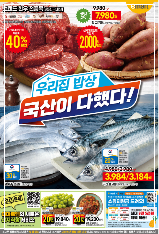 이마트 전단광고에서는 신선한 고기와 해산물 할인도 눈에 띕니다.