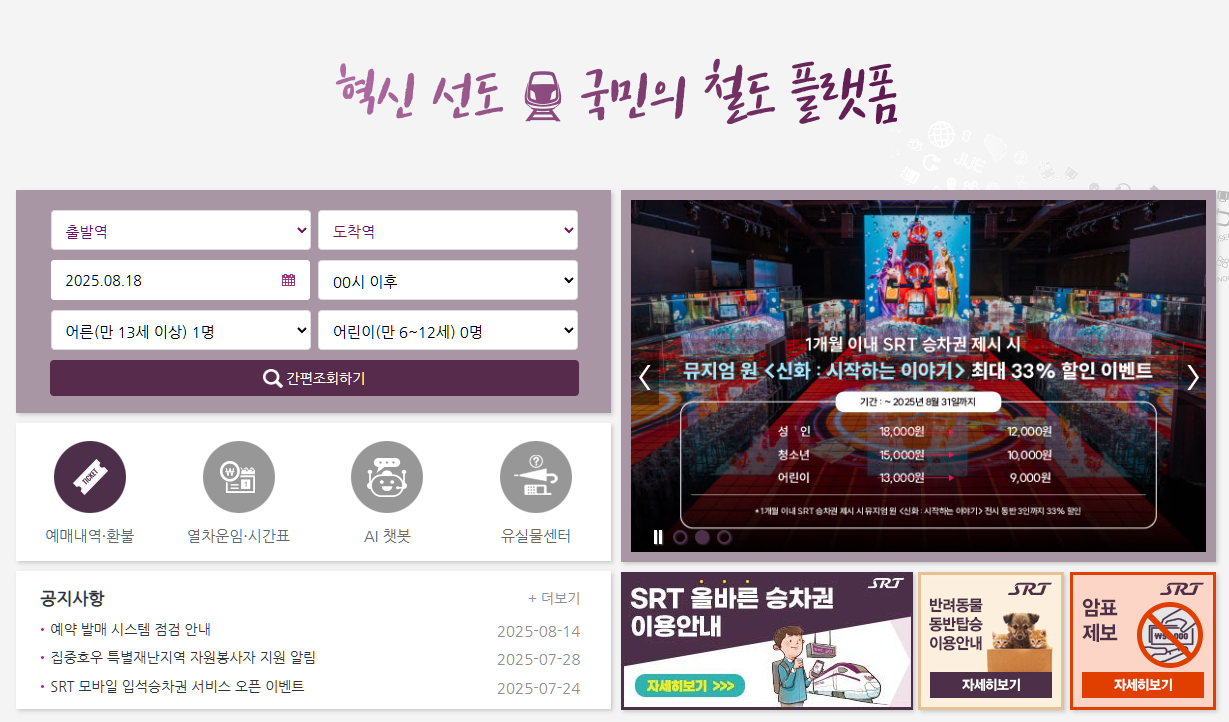 한국철도공사, 코레일, 승차권 예매, 기차여행상품, 운행정보 안내